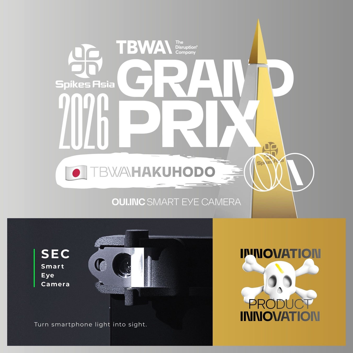 慶應義塾大学医学部発のベンチャー企業 OUI Inc.(ウイインク)は、OUI Inc.とTBWA HAKUHODOの共同プロジェクト「Smart Eye Camera」が、アジア太平洋地域におけるクリエイティブ・コミュニケーションとマーケティングに特化した、最も権威ある広告賞のひとつ「Spikes Asia2026」のInnovation部門でグランプリ、Design部門でブロンズアワードを獲得したことをご報告します。