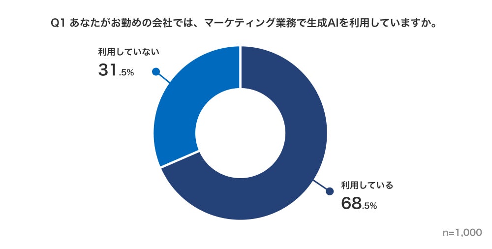 勤務先でマーケティング業務時に生成AIを利用しているかを聞いたところ、マーケティング業務で生成AIを利用しているのはほぼ7割(68.5%)でした。