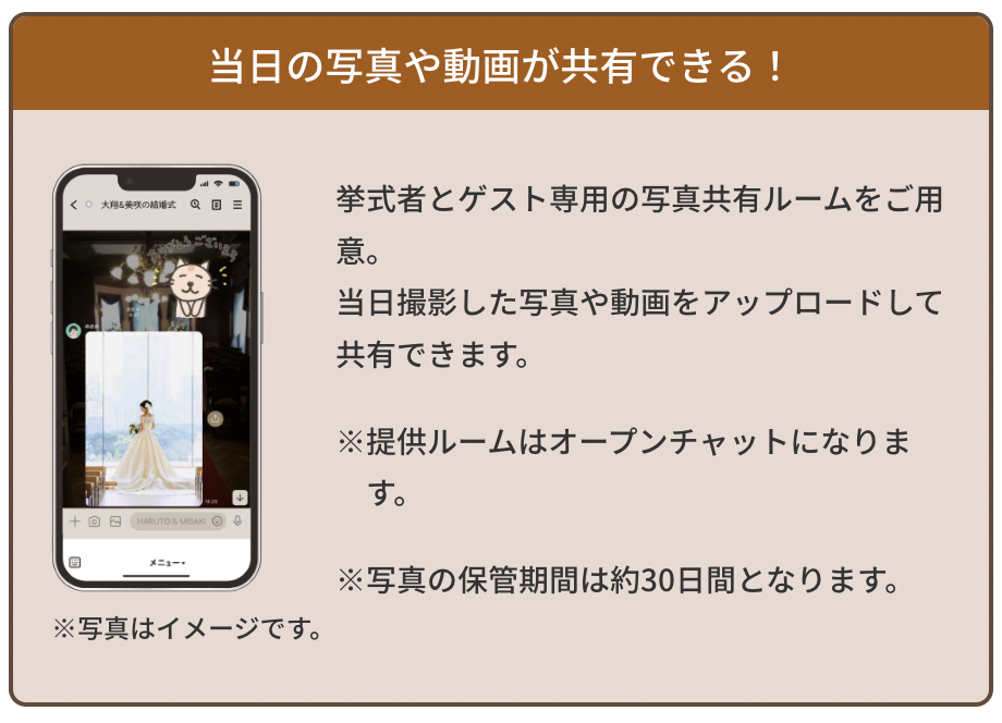 最後の1枚は当日の写真共有ルームへの導線をつけさせていただきます。