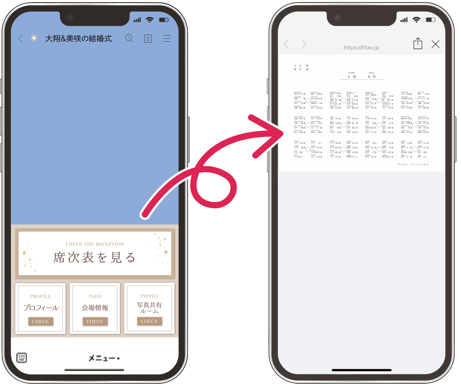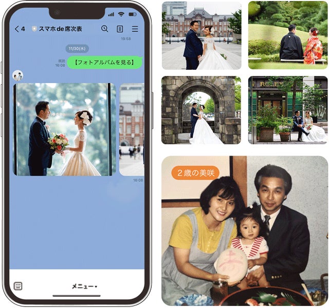 fitauのスマホde席次表なら事前に登録したメッセージと写真が結婚式翌日に自動で配信されるので安心です♪