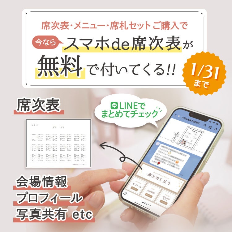 - 今なら席次表・メニュー・席札セットをご購入で全員に「スマホde席次表」をプレゼント!