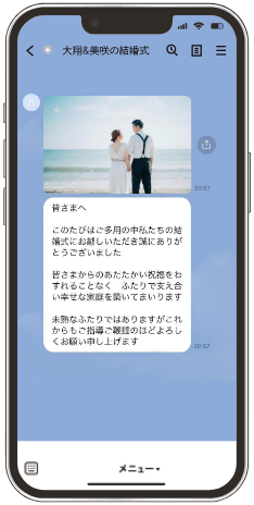 当日の写真を使用した本格的な御礼メッセージを送ることも可能です。