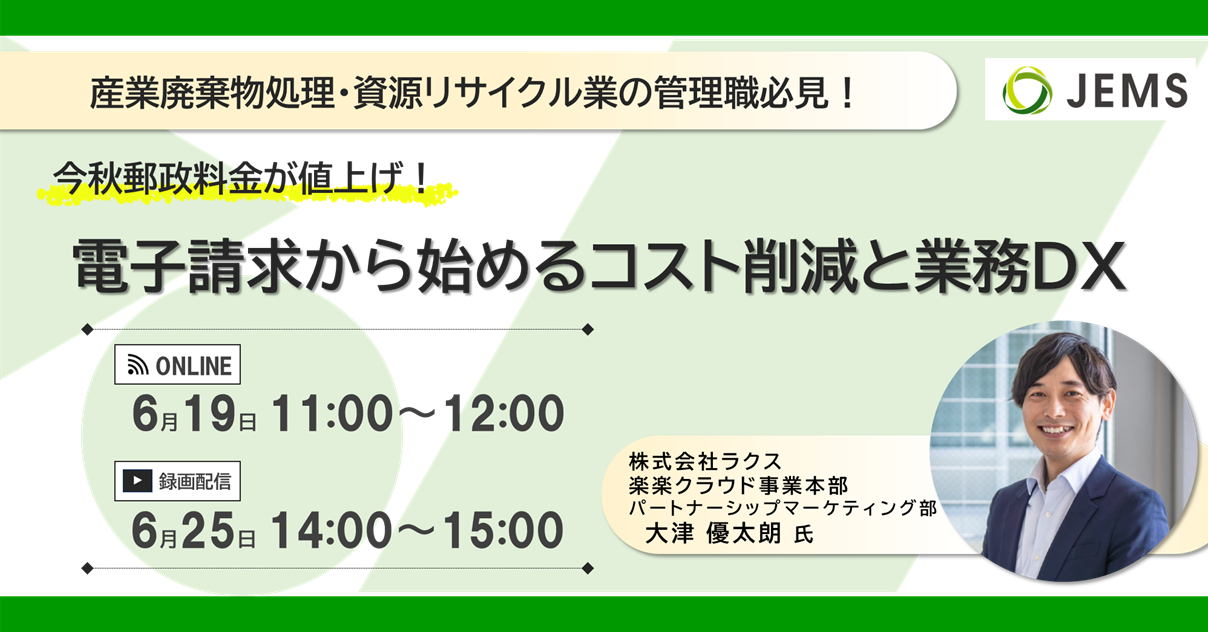 【6/19(水)開催】今秋郵政料金が値上げ!電子請求から始めるコスト削減と業務DX(無料オンラインセミナー)