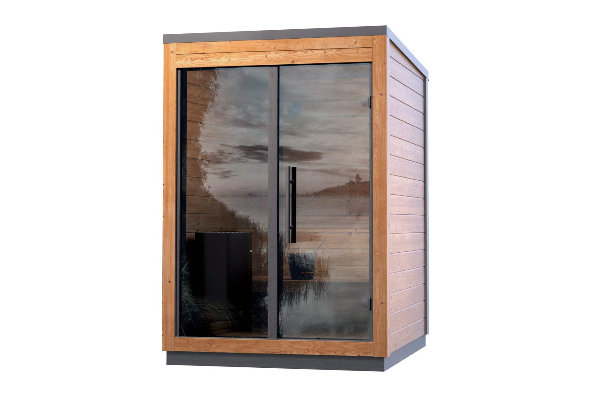 『Saunasell Aris』シリーズは前面がガラス張りとなっており、木とガラスが調和した北欧ならではのミニマルでスタイリッシュなデザインが特徴です。