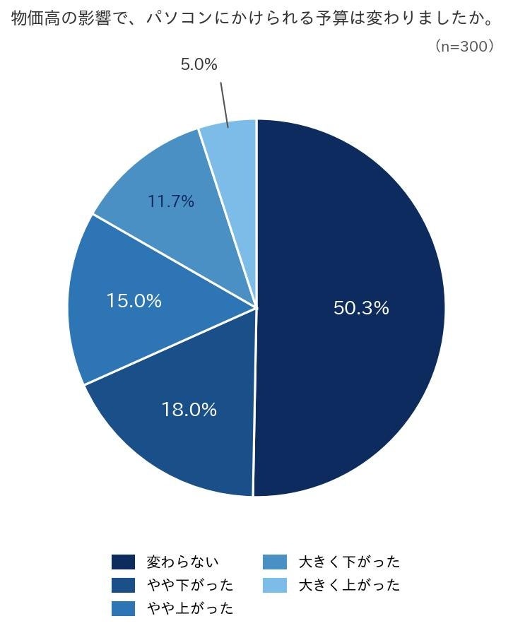 ■物価高の影響でも予算は「変わらない」が50.3%――ただし3割が「下がった」と回答