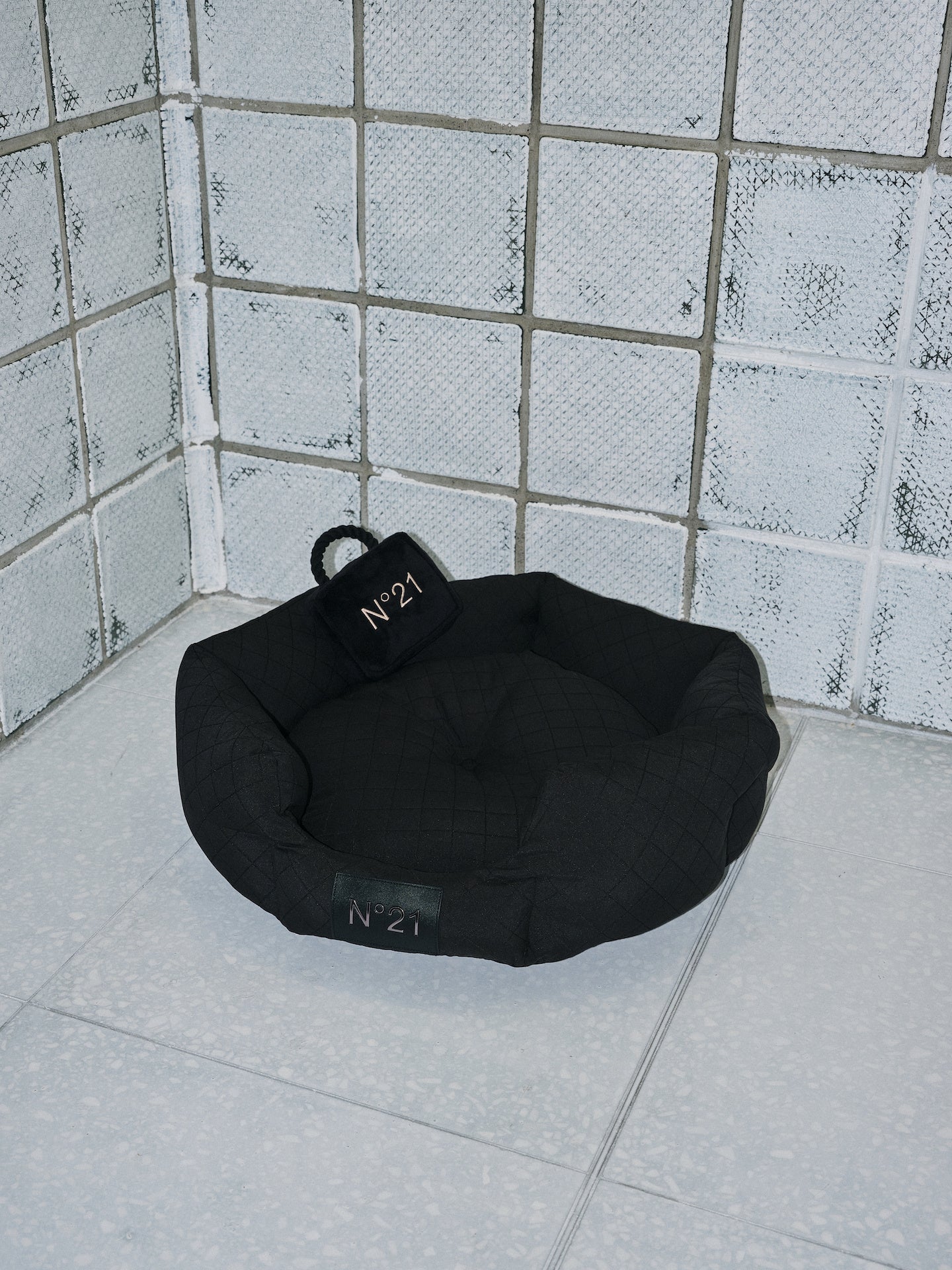 持ち運びに便利な、N21 ロゴ入りの外袋付きカフェマット。軽量・コンパクトでありながら、しっかりとした作りに中綿が入っており、愛犬が過ごしやすいよう設計されています。底面は滑り止めが付いています。