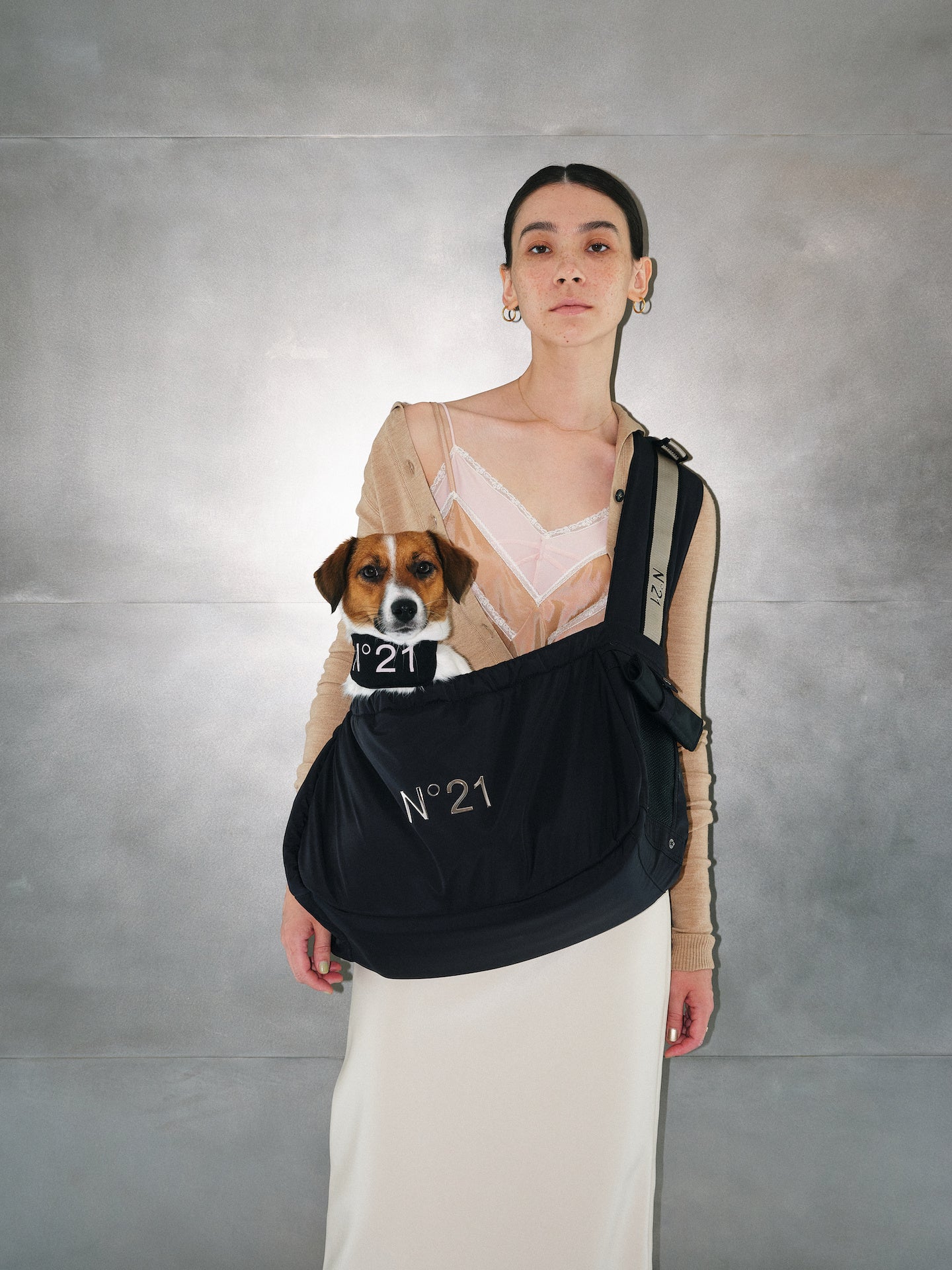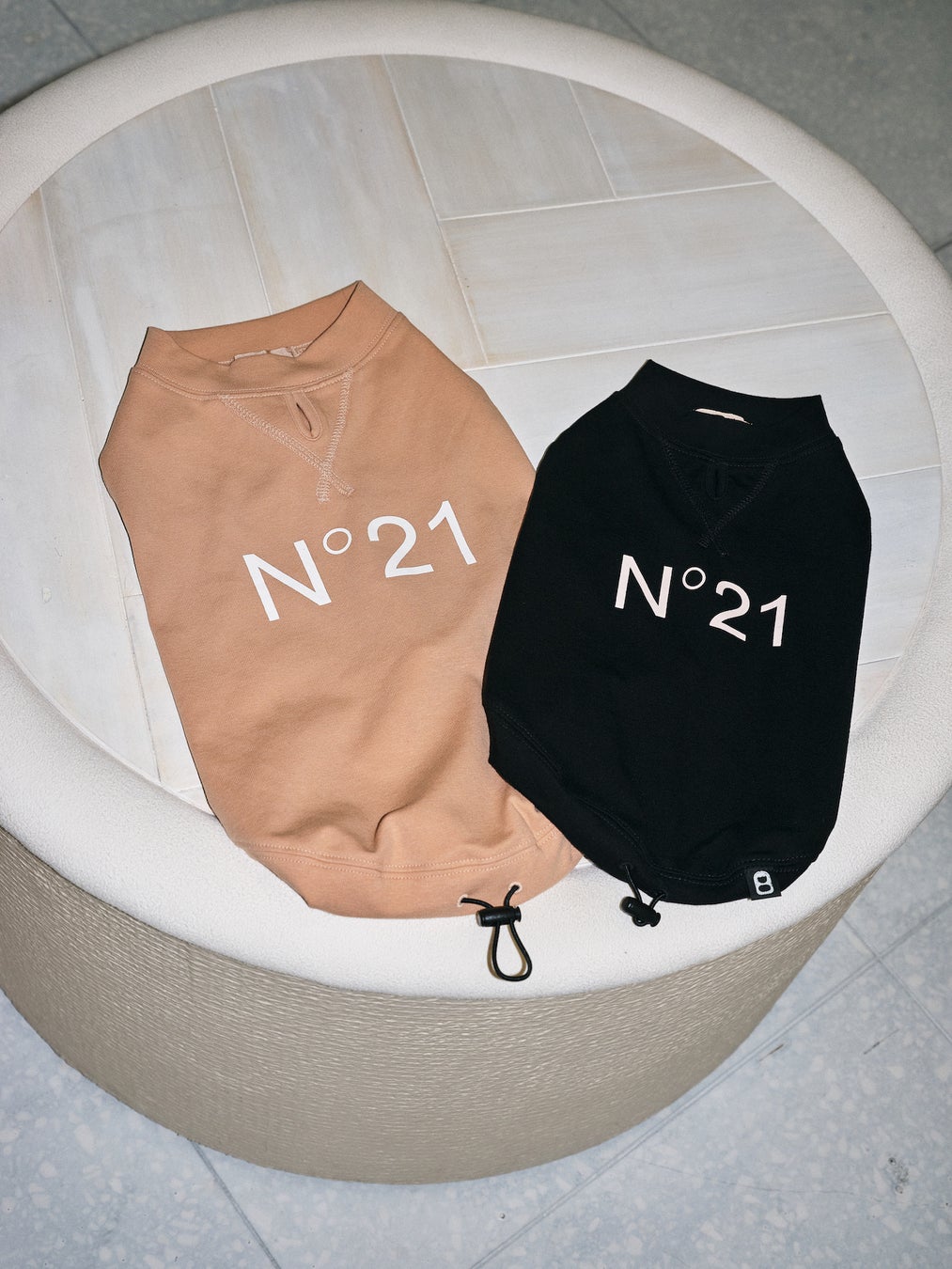 N21ロゴ入りタンクトップ。裾のドローストリングで着丈を調整可能で、愛犬のお好みのフィット感に合わせることができます。しっかりとしたコットン地を使用し、犬の体格や動きを考えた綺麗なシルエット。オーナー向けのN21のアイテムと合わせれば、リンクコーデもお楽しみいただけます。ブラックとピンクベージュの2色展開。