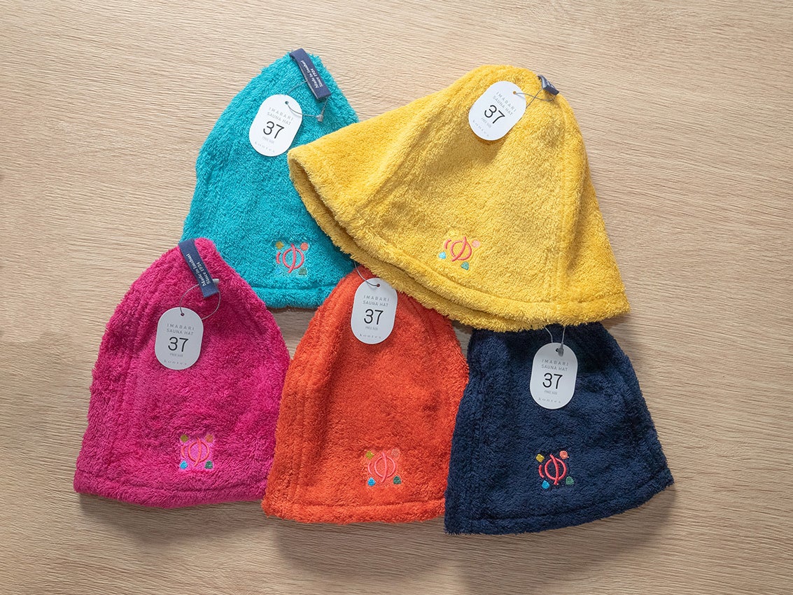 おふろcafé yusaで販売中の人気商品、オリジナルサウナハットをyamagata glamにて販売。「ゆ」の文字が印象的なロゴを刺繍しており、カラーバリエーションも豊富です。