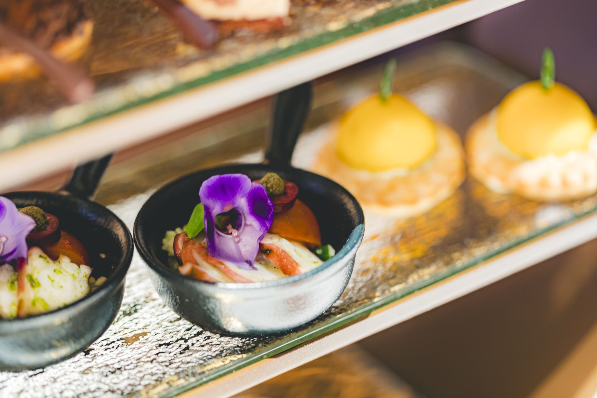 食事も甘いお菓子も、フォションの紅茶もアルコールも楽しめる美食家のための夜のハイティースタンドだけでなく、選べるメインにはシーフードやチキンやビーフをフレンチの技法で調理しご提供いたします。