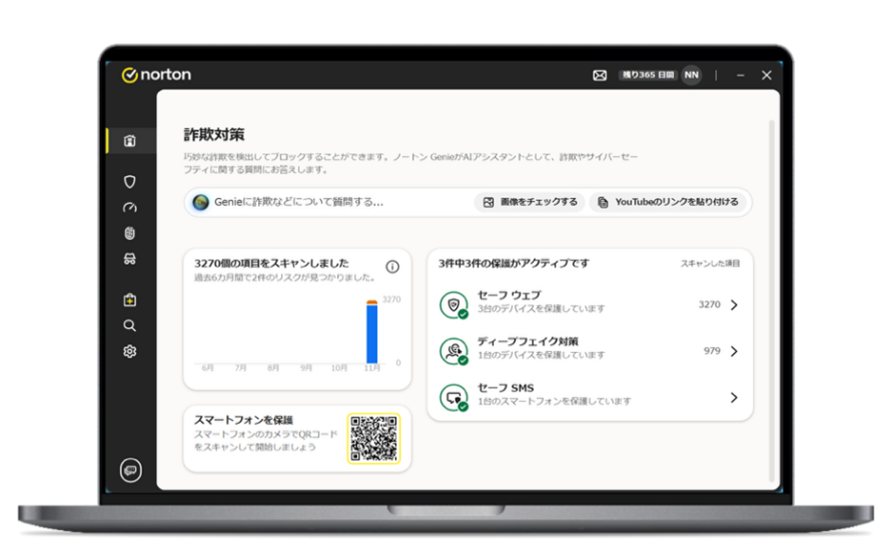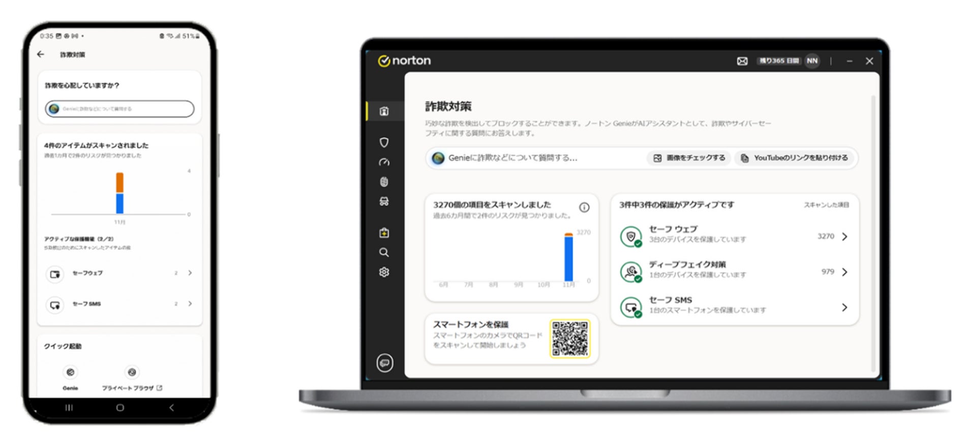 英語版での先行展開に続き、ウェブ、SMS、動画などあらゆるチャネルでのリアルタイム詐欺対策機能を、ノートン製品が販売されているすべての地域で利用できるようになります※。これにより、ノートンは「すべての人に、あらゆる場所で、積極的な保護を提供する」という取り組みをさらに強化します。