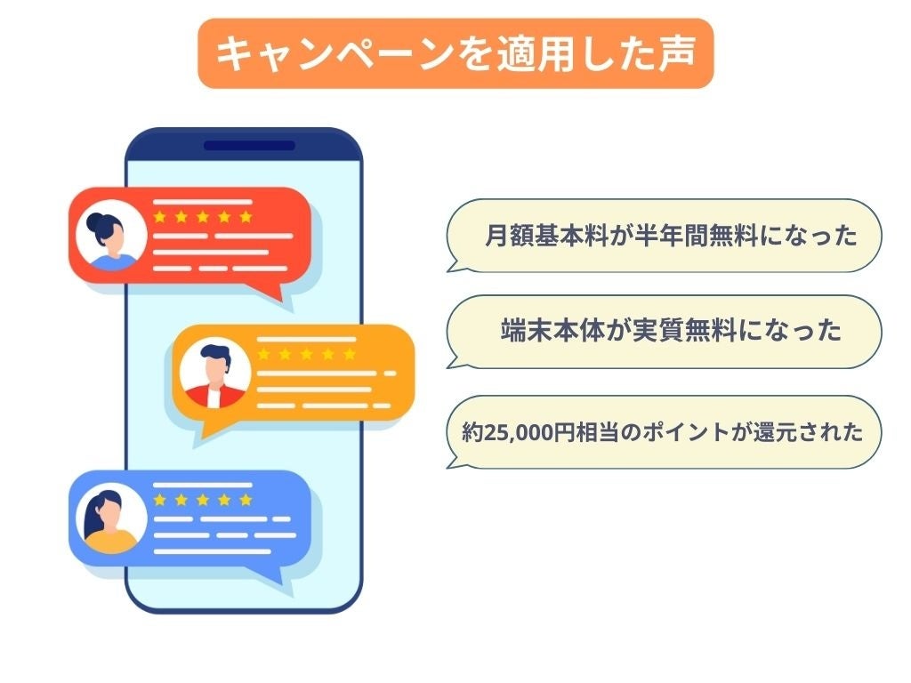 また「20,000円相当以上のポイント還元を受けられた」という回答もあり、結果的に月額料金が実質数カ月無料となった方もいました。
