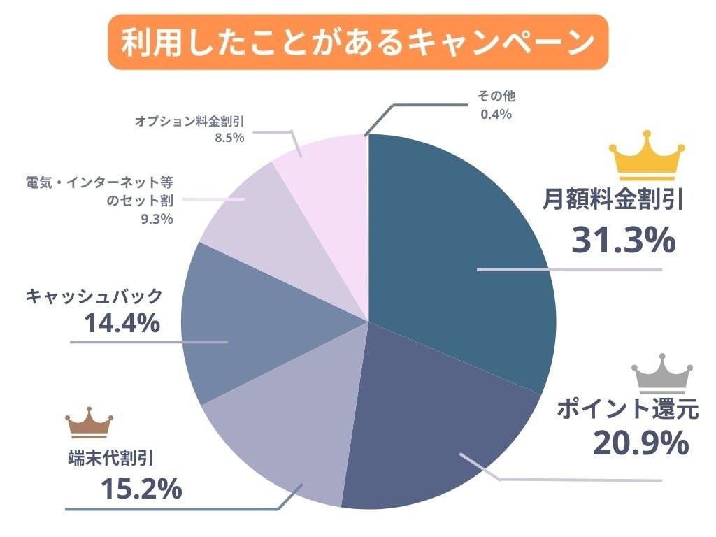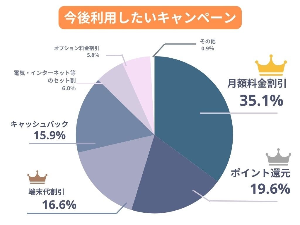 キャンペーンの中でも継続的に恩恵を受けられ、お得に感じる月額料金割引が支持される結果となりました。