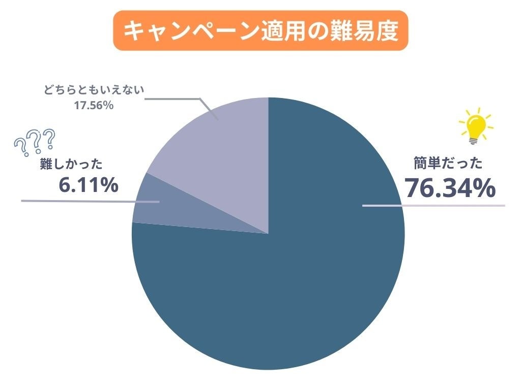 約7割以上の人が「簡単だった」と回答しており、複雑そうに感じる適用方法も申し込み時に簡単に行えることがわかりました。
