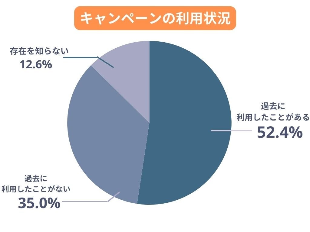一方で、キャンペーンを利用したことがない、存在を知らないという人も約半数の47.6%という結果になりました。