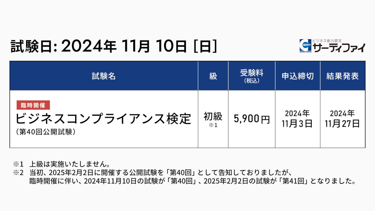 「ビジネスコンプライアンス検定」公開試験の臨時開催が決定(2024年11月10日)