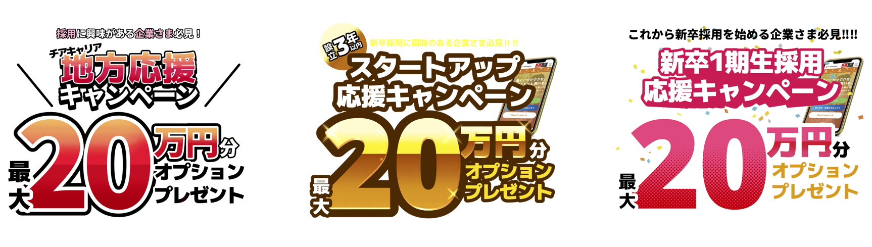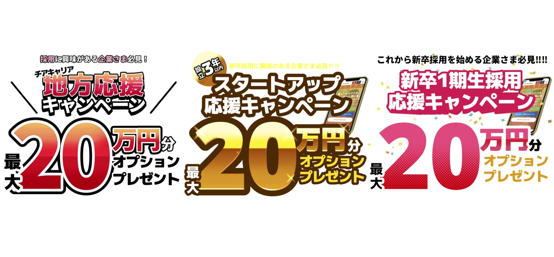 地方の中小企業を初め、設立3年目以内のスタートアップ、今期から新卒採用を始める企業を対象とした応援キャンペーンをリリース