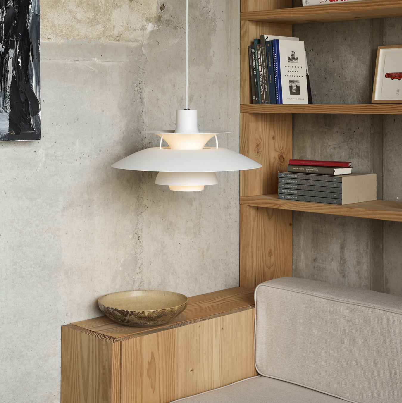 北欧デザインの美学を体現している、名作「PH5」のサステナブルなモデルも展示。