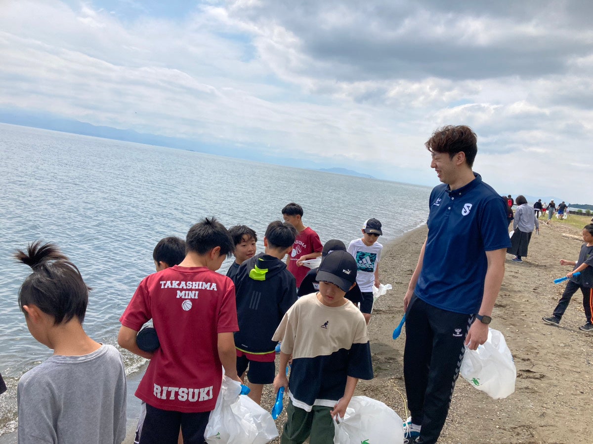 滋賀レイクスは「Lakes(湖)」の名前を背負うチームとして、びわ湖の美化に貢献する取り組みとして大津市周辺での清掃活動「クリーンウォーク」に継続的に取り組んできました。