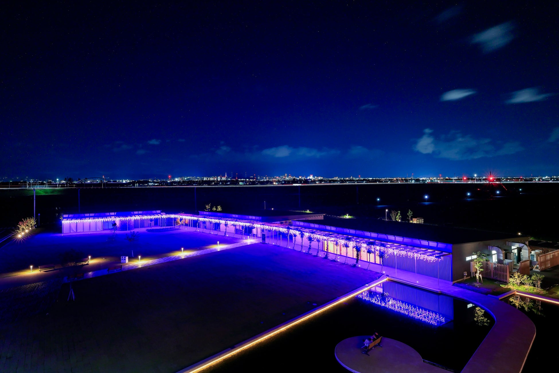 また、藤塚地区の「藤」にまつわる伝説にちなみ、藤色のイルミネーションも16:00から22:00まで点灯しております。本館3階から続く屋上は、通常20:00までの開放時間を21:00まで延長し、仙台の美しい夜景とともにイルミネーションをお楽しみいただけます。