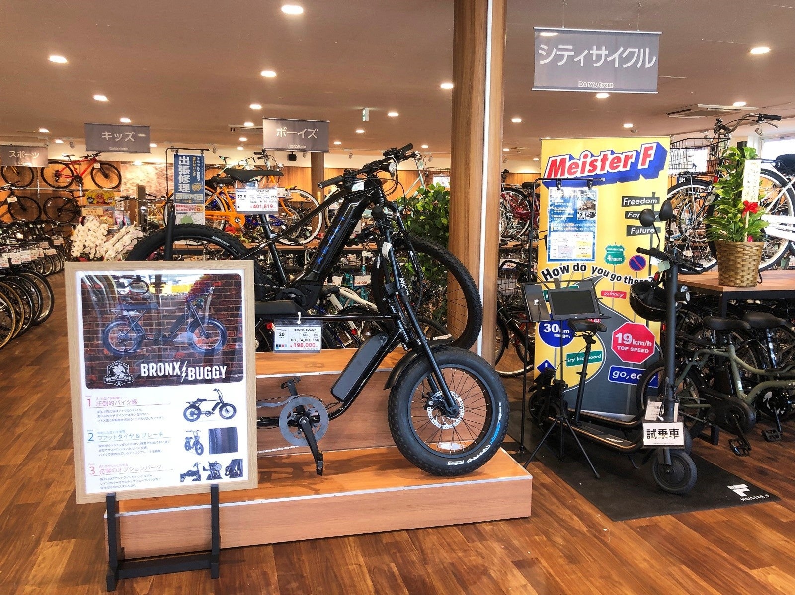 また、法改正を前に注目の高まる公道走行可能な電動キックボードも試乗車をご用意しておりますので是非お試しください。