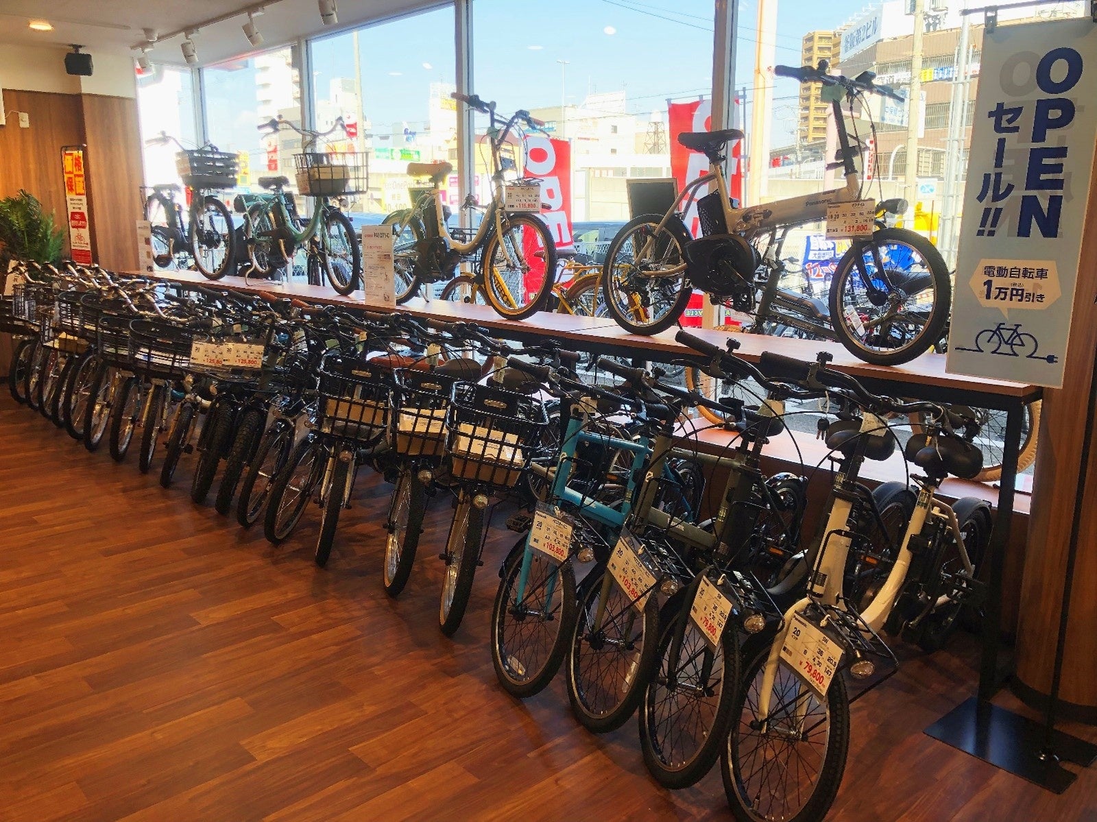 オープンを記念して、12月9日(金)から12月11日(日)までの3日間は大特価オープニングセールを実施いたします。特別価格として、日替わりで6,578円(税込)のファミリーサイクルや9,878円(税込)の6段変速付きシティサイクルをご用意すると共に、各種電動アシスト自転車に関してはWebサイト(https://www.daiwa-cycle.jp/open_sakaifukai/index.html)よりクーポンをご持参いただくと10,000円(税込)引で販売をさせていただきます。
