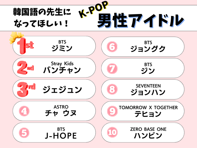 韓国語の先生になってほしいK-POP男性アイドル結果発表