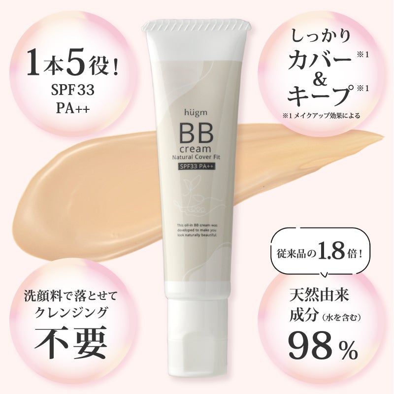 年齢を重ねると共に気になるシミ・シワ・くすみ…。そんなお悩みに寄り添える、まるで素肌がキレイになったかのようにカバーしてくれるBBクリームを作りたい。そんな想いで開発をしたのが「hugm BBクリーム ナチュラルカバーフィット」です。