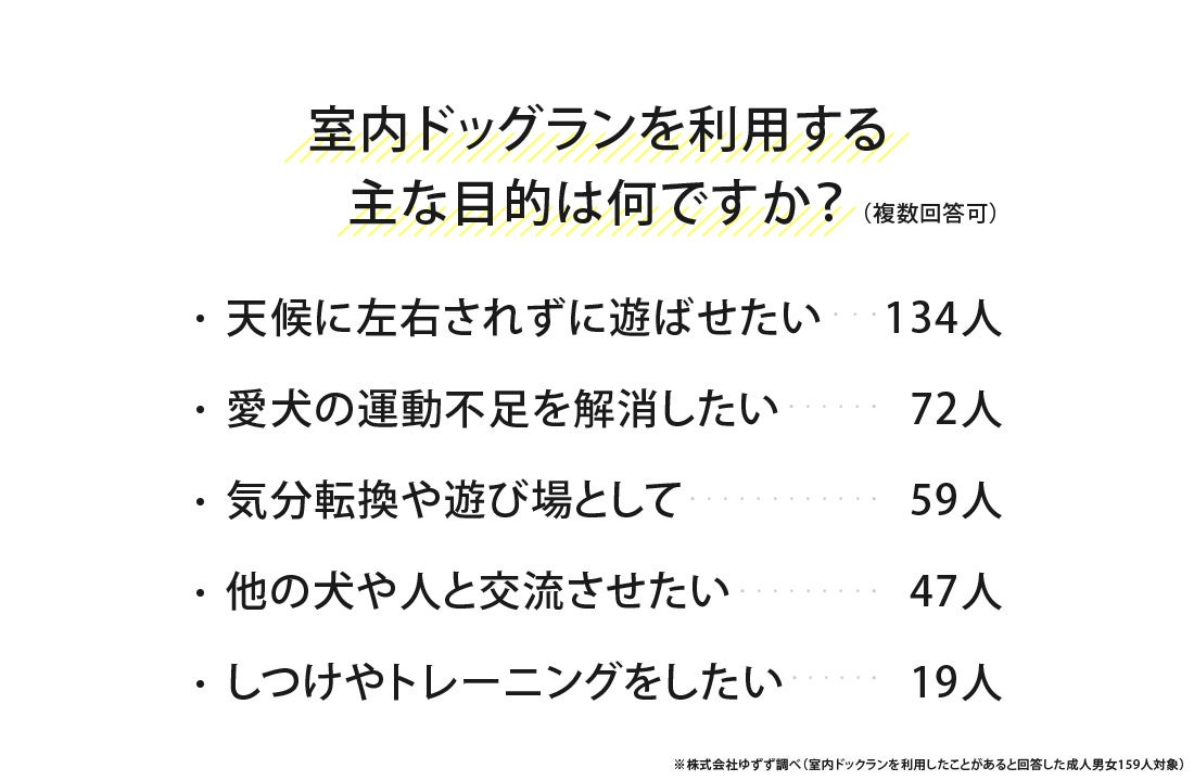 アンケート調査の結果を基に、室内ドッグランの利用状況や、利用者が感じているメリット・不満点について解説します。