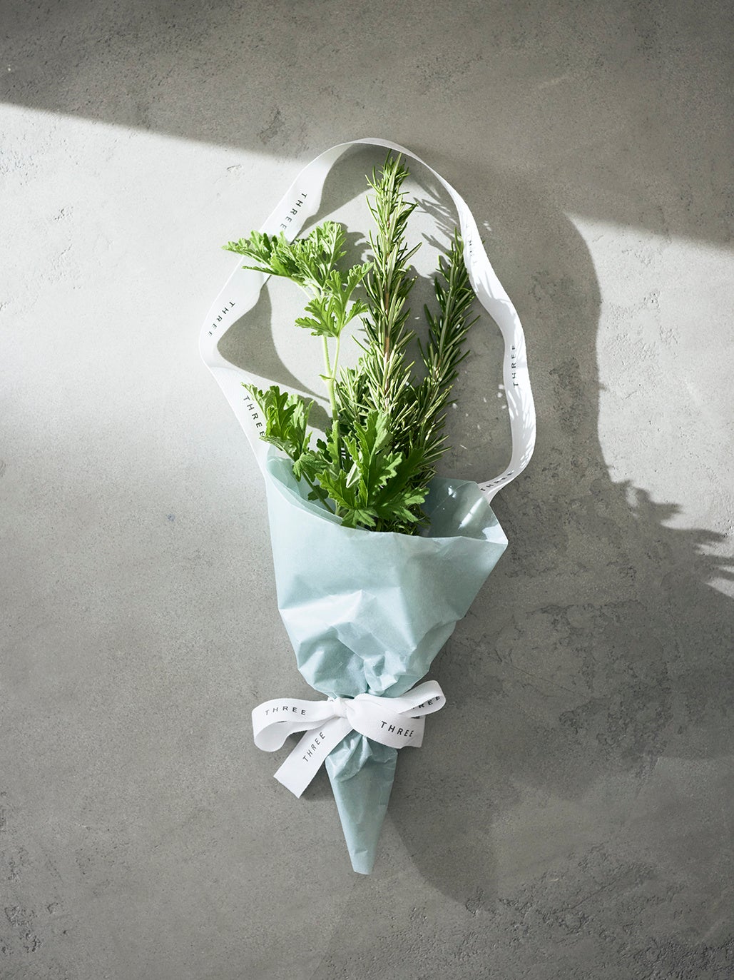 THREE ハーブガーデンで育てたハーブを用いた5種のオリジナルブレンドティーをお試しいただけます。