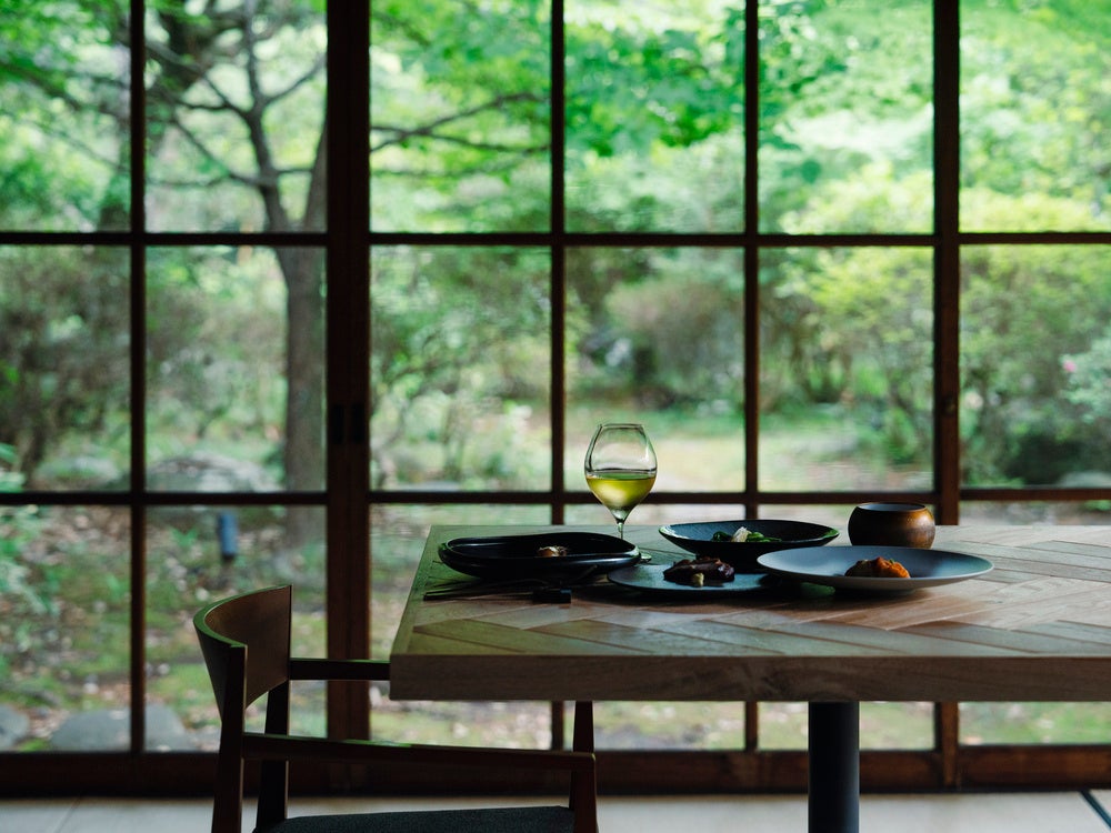 千本松原の一画の庭園に佇む、約110年の歴史を持つ登録有形文化財のレストラン「茶亭」と、渡辺明氏によって増築された「別邸」からなる宿泊施設。駿河湾や伊豆近海の魚介はもちろん、自然豊かな地元の四季折々の食材を豪快かつ繊細に仕上げた、齋藤宏文氏監修によるモダンチャイニーズをお楽しみいただけます。松林と富士の伏流水が湧き出る水盤を望むわずか8室の客室、名建築で過ごす至福のひとときを提供いたします。