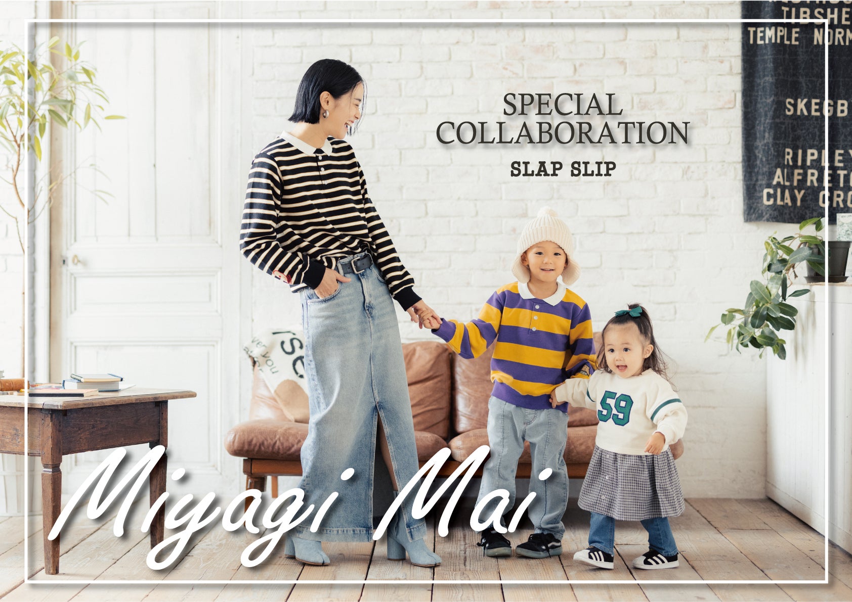 また、長男が書いたキャラクターをそままボーダートレーナーのワッペン刺繍にするなど、遊び心ある仕上がりになっています。他にも、宮城 舞さん公式Instagramによるライブ配信(10月12日(木) 21時~)や、SLAP SLIP公式Instagramにてコラボ商品が当たるプレゼントキャンペーンなどを実施しますので、詳しくは双方のInstagramをチェックしてください。