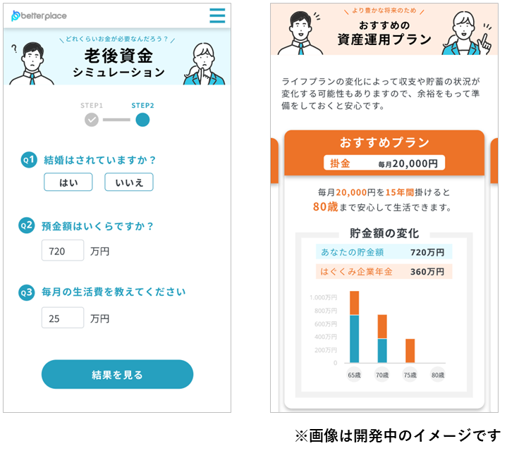 この機能により、将来必要なお金について具体的にシミュレーションすることができ、今後どのようなアクションが必要なのかを見える化します。資産形成への意識を高め、行動を促すことで、早いうちから老後に備えていただくことができます。