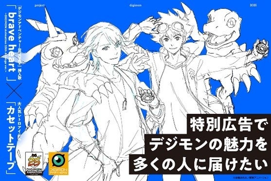 広告には、「デジモンアドベンチャー-BEYOND-」内で使用される、「brave heart-DIGIMON Animation 25th Arrange ver.-」が収録されたカセットテープを張り付け掲出いたします。年代を越えて愛されるカセットテープと共に、デジモンも年代や世代を超えて世界中で愛される作品を目指したい。カセット特有の音質で、改めて「brave heart」の魅力に浸ってみませんか。