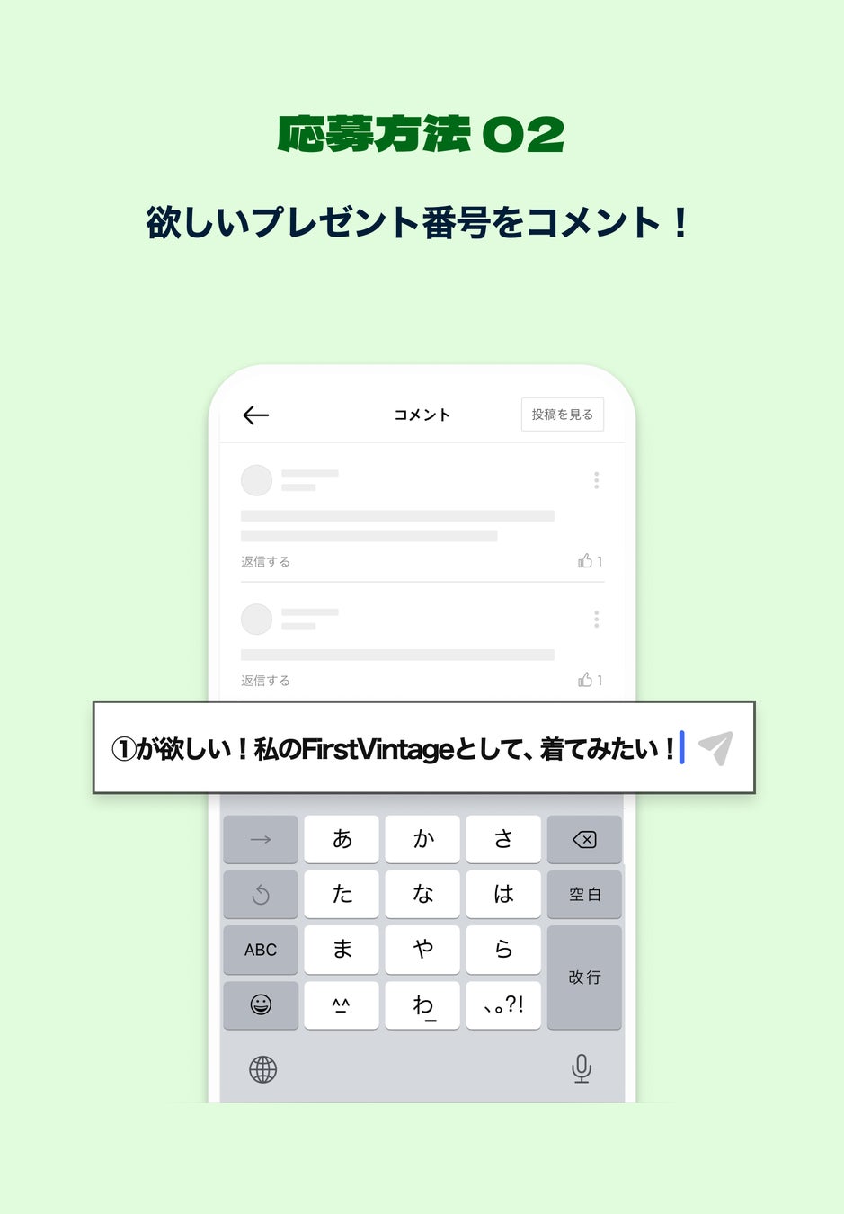 内容:古着やファッション好きのクリエーターが「好きな古着アイテム」、「古着好きのきっかけとなった人やお店」、「洋服は好きだけど、初めて古着を試す」などのテーマを設定し、「私のFirst Vintage」について特別コンテンツをお届けしながら、厳選した古着アイテムをプレゼントする企画です。