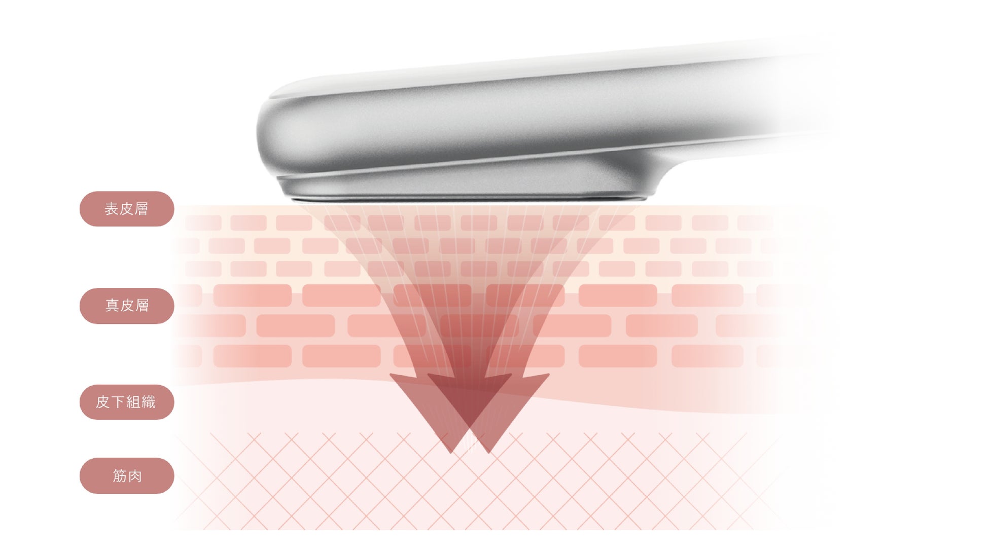 美容クリニックでも使用されている安全性の高い光美容テクノロジーであるLEDを搭載 。光の色(波長)によって到達する深さが変わり、肌の真皮層にまでアプローチすることが可能です 。