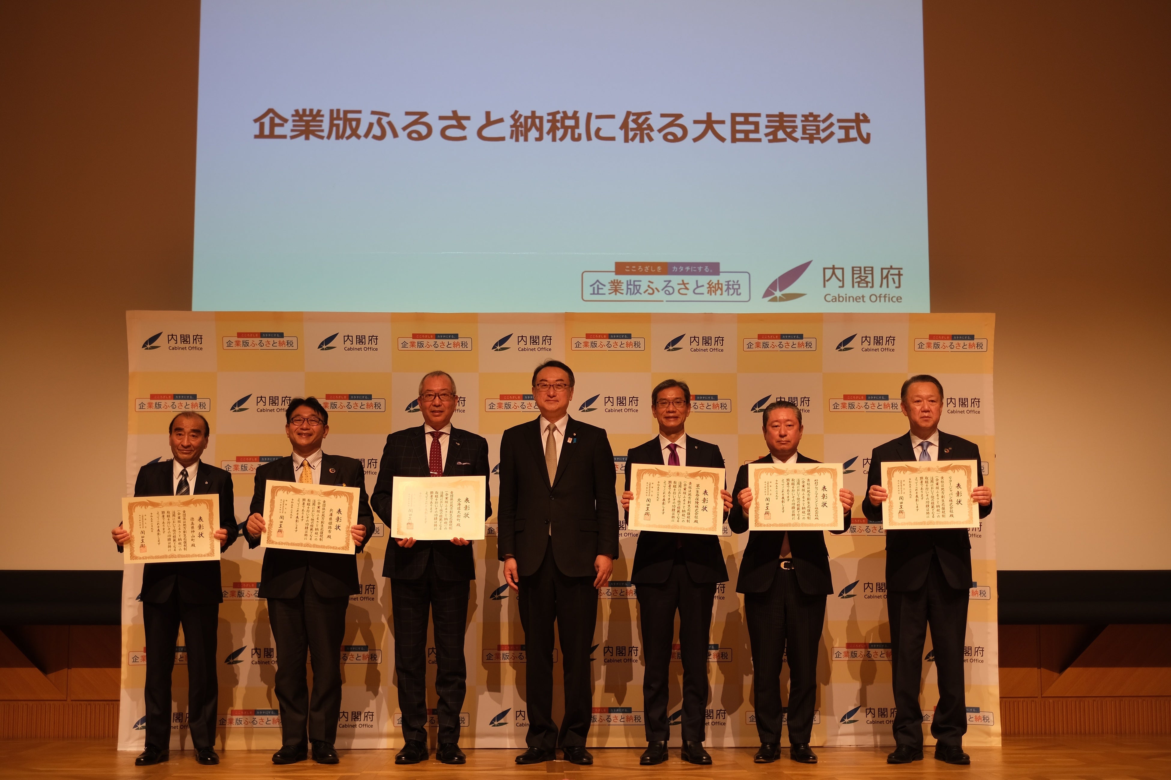 企業版ふるさと納税に係る大臣表彰は、「企業版ふるさと納税の活用において、特に顕著な功績を上げ、他の模範となると認められる活動を行った企業や地方公共団体に対し、内閣府特命担当大臣(地方創生)が表彰する制度」で、内閣府により平成30(2018)年度に創設されました。
