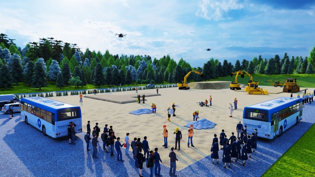 鳥取県の基幹産業である建設産業について、先進技術の導入による生産体制の革新とそれを担う人材育成、生産性の向上を目指す企業支援を行うために新技術実証フィールドを整備するものです。(3次元測量設計、ICT建機操作など県内企業の技術研修等を実施。)鳥取砂丘月面実証フィールドに隣接しており、面積も同じ約0.5haとなっています。