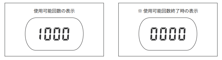 アルコール検知器のセンサーには、寿命があります。使用開始後1年経過またはセンサー測定回数が1,000回以上になった場合のどちらか早い 方がセンサーの寿命です。あと何回使用できるかは一目でわかります。