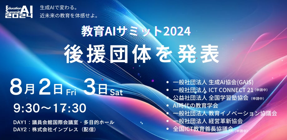 この度、「教育AIサミット2024」の開催に伴い下記の通り後援団体を発表いたします。