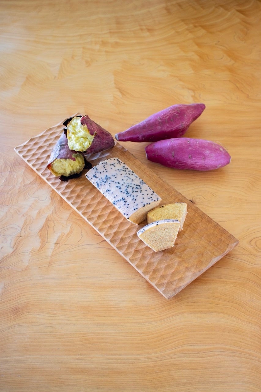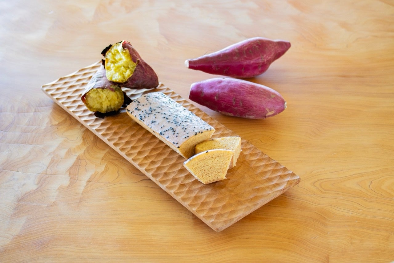 atelier京ばあむ1Fのショップでは紅はるかを使用した「お芋ばあむ」を、3Fの京ばあむCafeではさつまいもをふんだんに使用した「お芋贅沢プレート」を、期間限定で販売します。