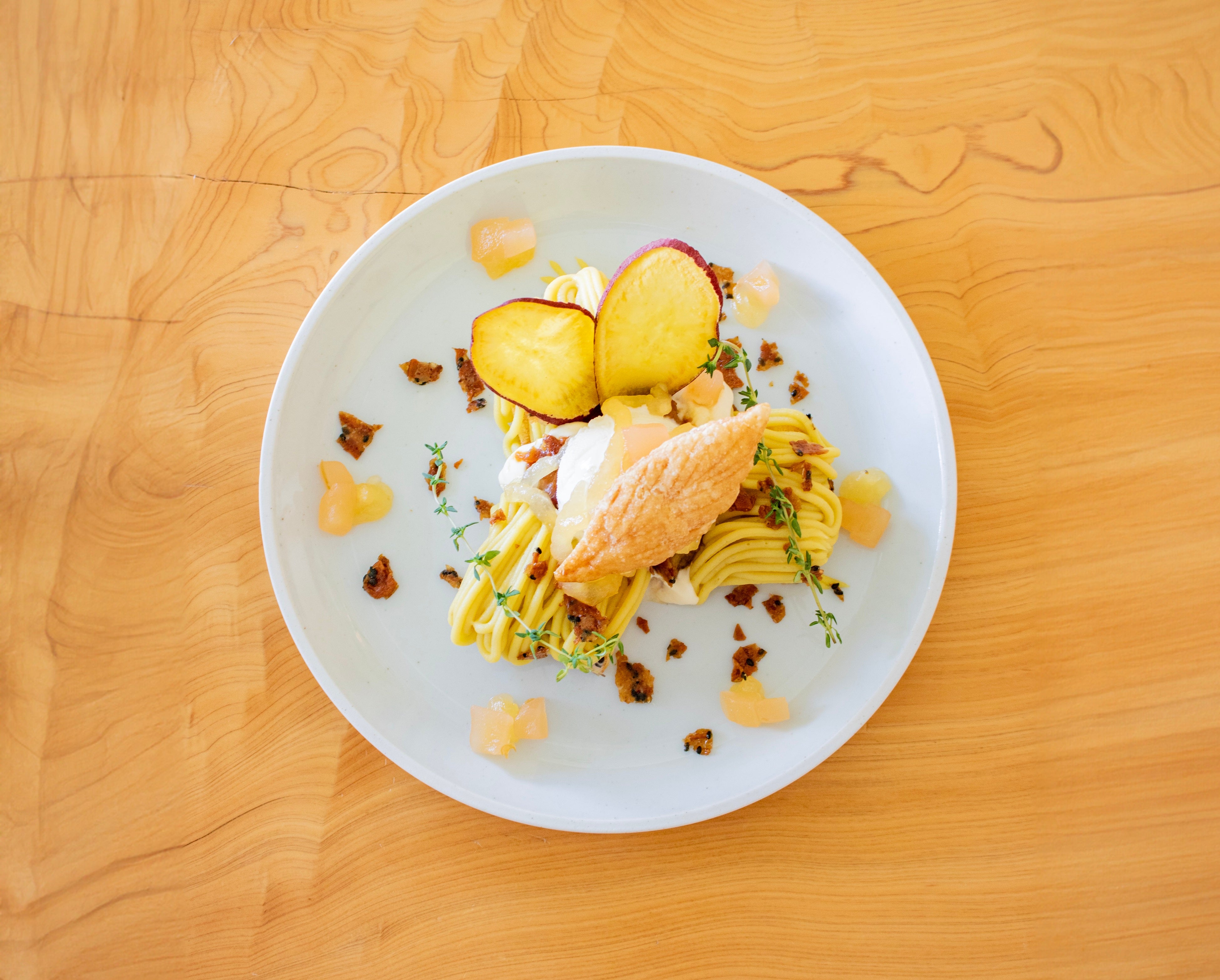 さつまいも好きの方に贈る、口いっぱいに広がるさつまいもの甘さと、りんごの酸味が楽しめる秋限定の贅沢なプレートです。