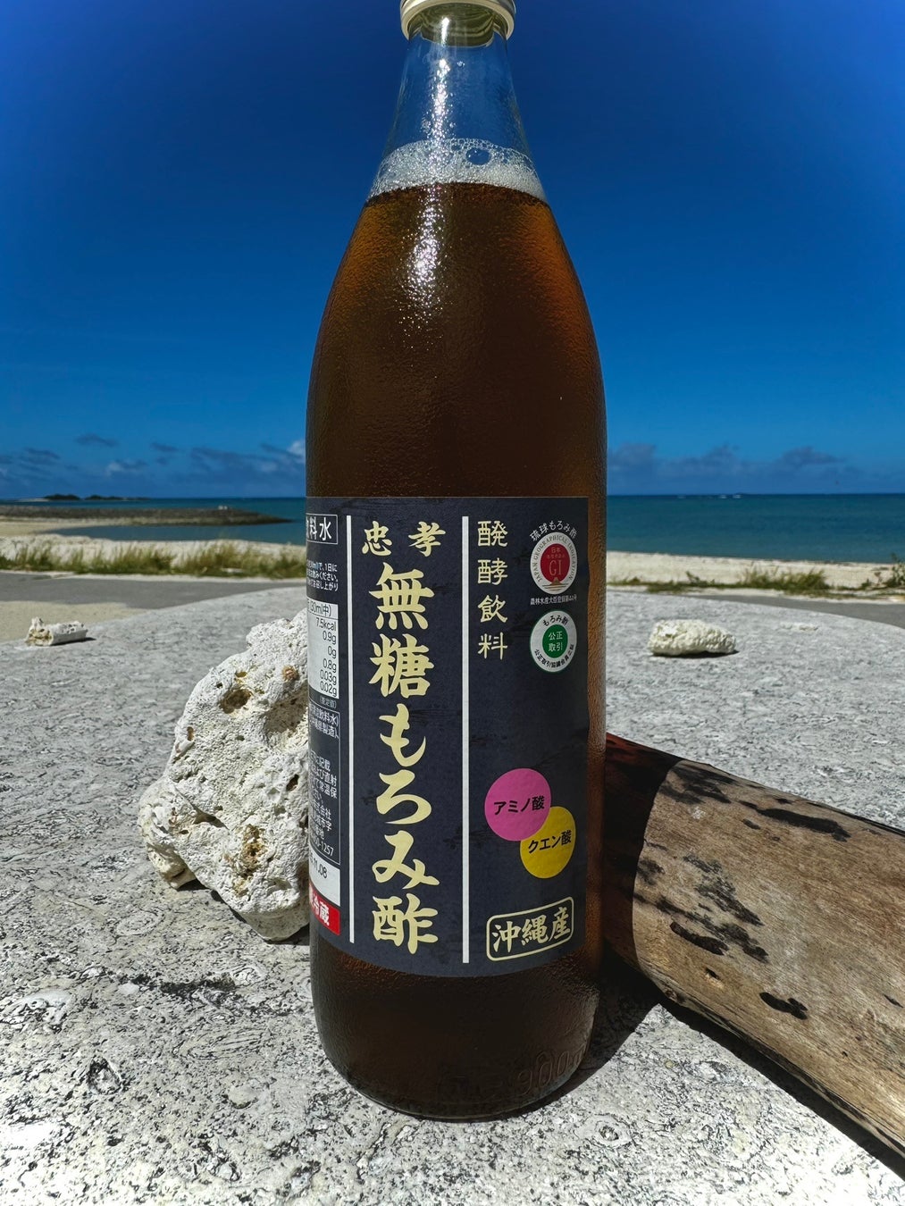 ・もろみ酢は、泡盛の副産物、蒸留粕(かしじぇー)から作られた、黒麹由来の天然のクエン酸やアミノ酸が含まれた清涼飲料水です。
