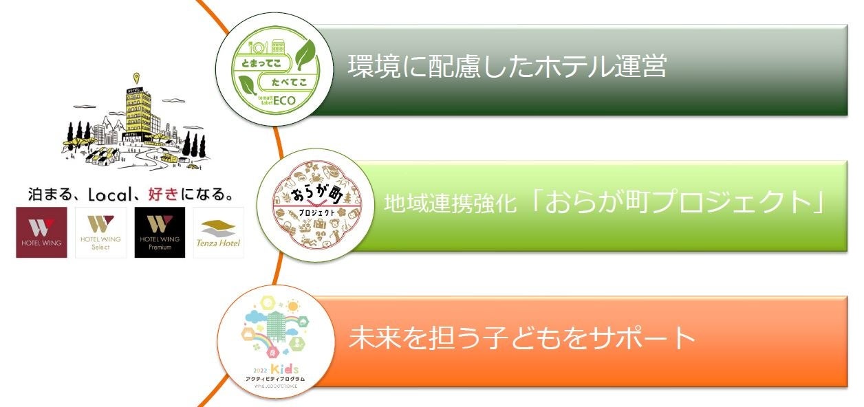 株式会社ミナシアでは、ホテル事業やレストラン事業を通じて持続可能な社会の実現に貢献することを目指しています。ESGやSDGsの考え方を意識しながら、3つのテーマ【環境に配慮したホテル運営】【地域連携強化】【未来を担う子どもをサポート】を軸に継続的取り組みを行っています。