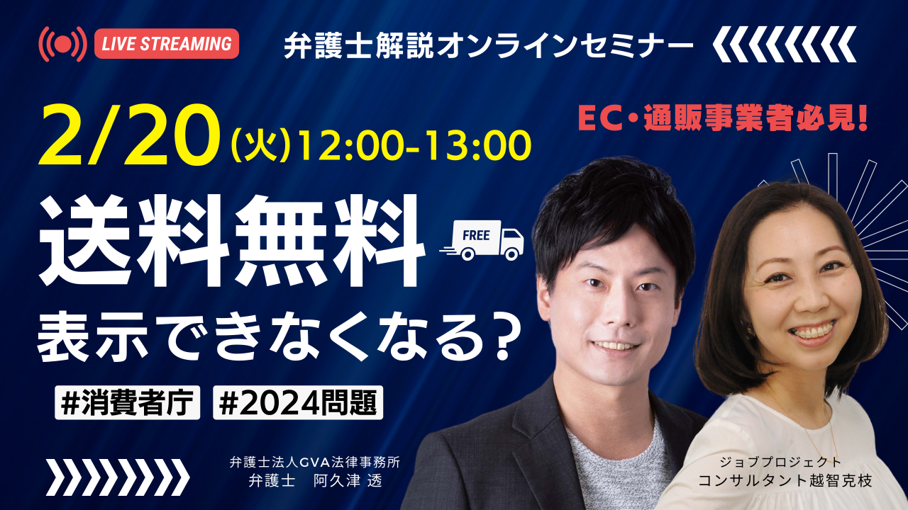 2/20(火)オンラインセミナー「送料無料」表示って使えなくなるの?