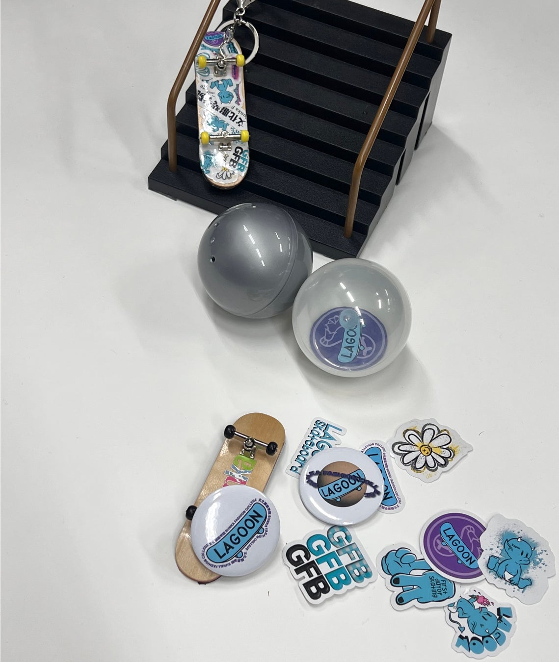 ●オリジナルグッズ販売: 学生がデザインした遊び心満載の靴下や、指スケ、缶バッチ、ステッカーなど、LAGOONと文化服装学院のロゴを用いたオリジナルグッズを販売します。