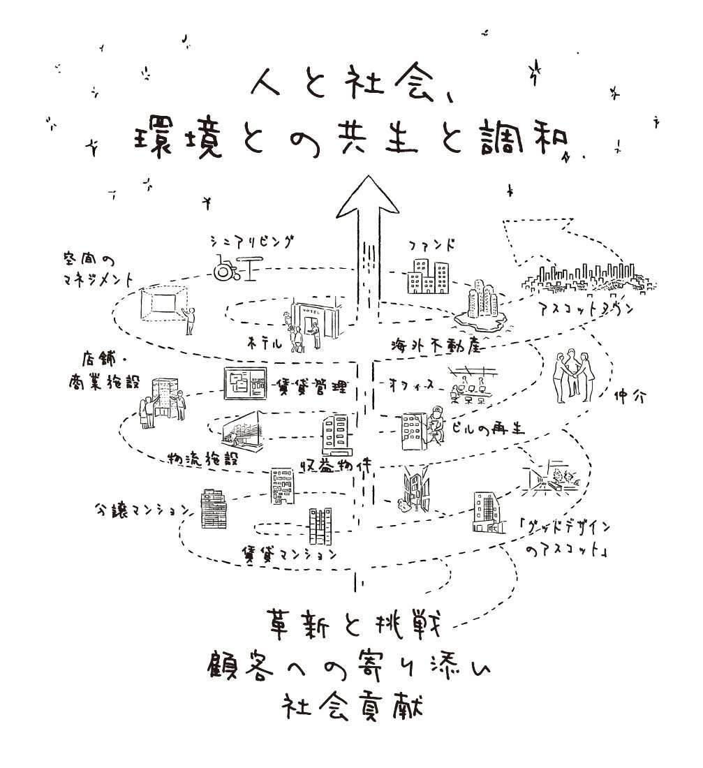 アスコットは、創業以来20年以上にわたり培ってきたデザイン性*と品質に優れた物件開発力、そして国内外のネットワークを活用し、グローバル・スタンダードのライフスタイルに合わせた上質な不動産サービスの提供を目指す不動産 価値創造のプロフェッショナル集団です。