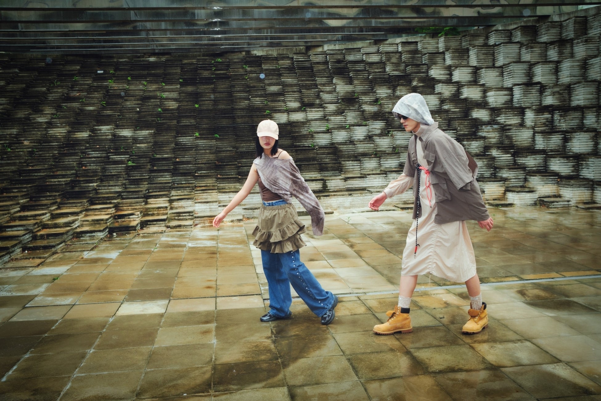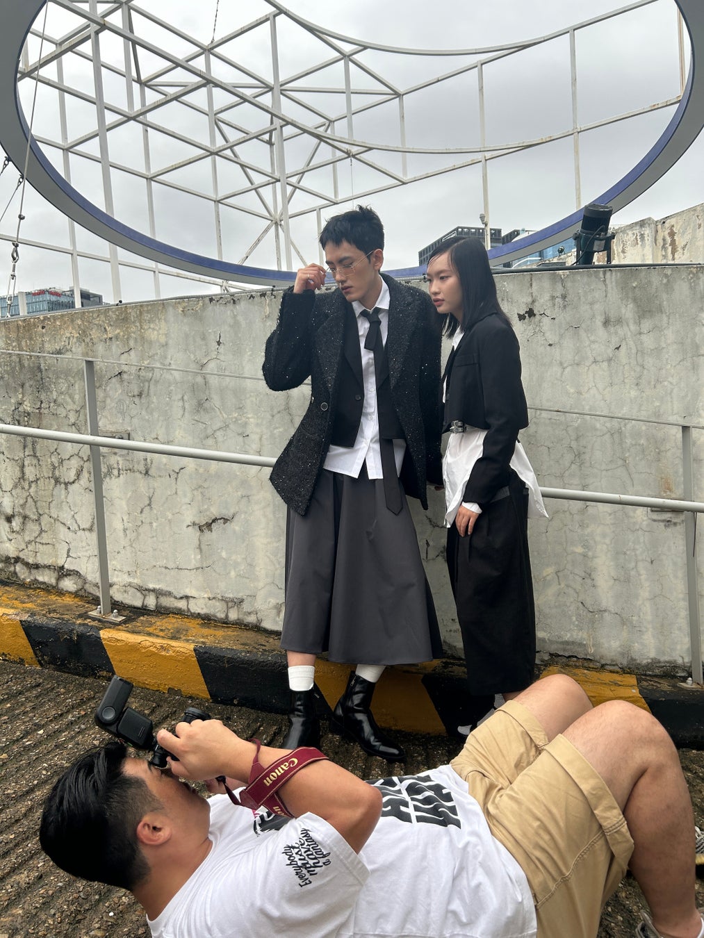 「DFWM Buyer Lounge」「DDP SHOWROOM」から、東大門卸売市場および韓国新進ブランドのアイテムをセレクトし、スタイリングを考案。トレンドを意識しつつも自らのスタイリングを感度高く具現化。KIMスタイリストの指導に基づき、学生たちは、ロケ地の雰囲気を踏まえ、写真の世界観をどうつくるかを強く意識した。