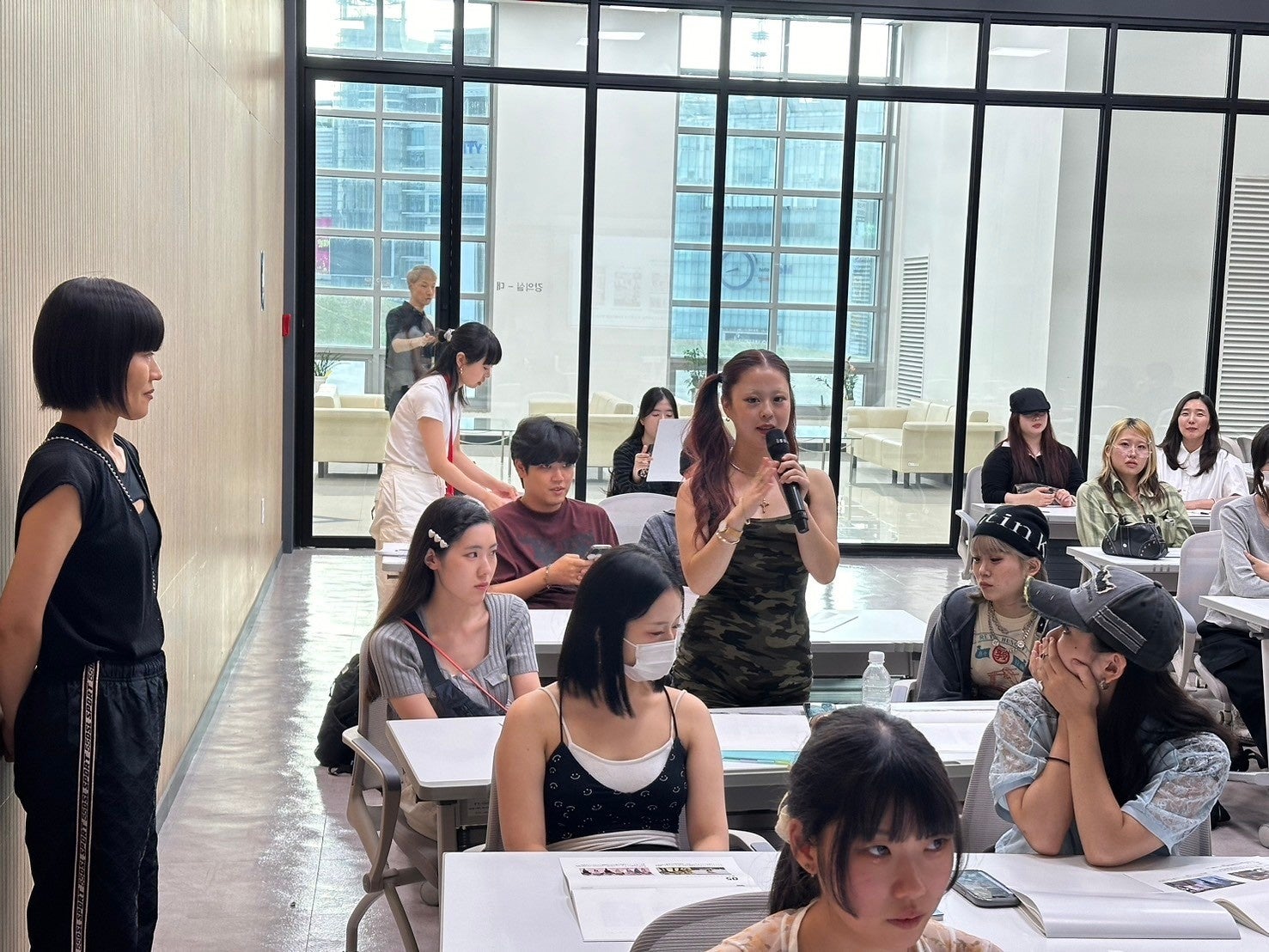 韓国ファッションシーンで活躍する気鋭のスタイリストKIM氏による、韓国における最新トレンド事情やスタイリストになるためのノウハウのレクチャー。講義には、OIFの学生の他、韓国・ピョンテク大学の学生も参加し、学生同士の日韓交流が図られた。
