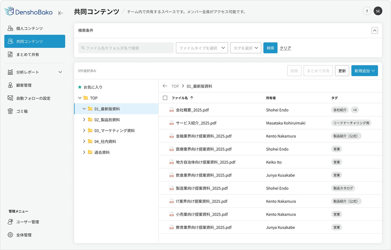 Microsoft 365と連携し、社外へのファイル共有における課題を解決します。複数ファイルの一括共有、パスワード付きリンクの作成、閲覧状況のリアルタイム可視化、未閲覧者への自動フォローアップ機能により、セキュアなファイル共有と業務プロセスの効率化を実現します。