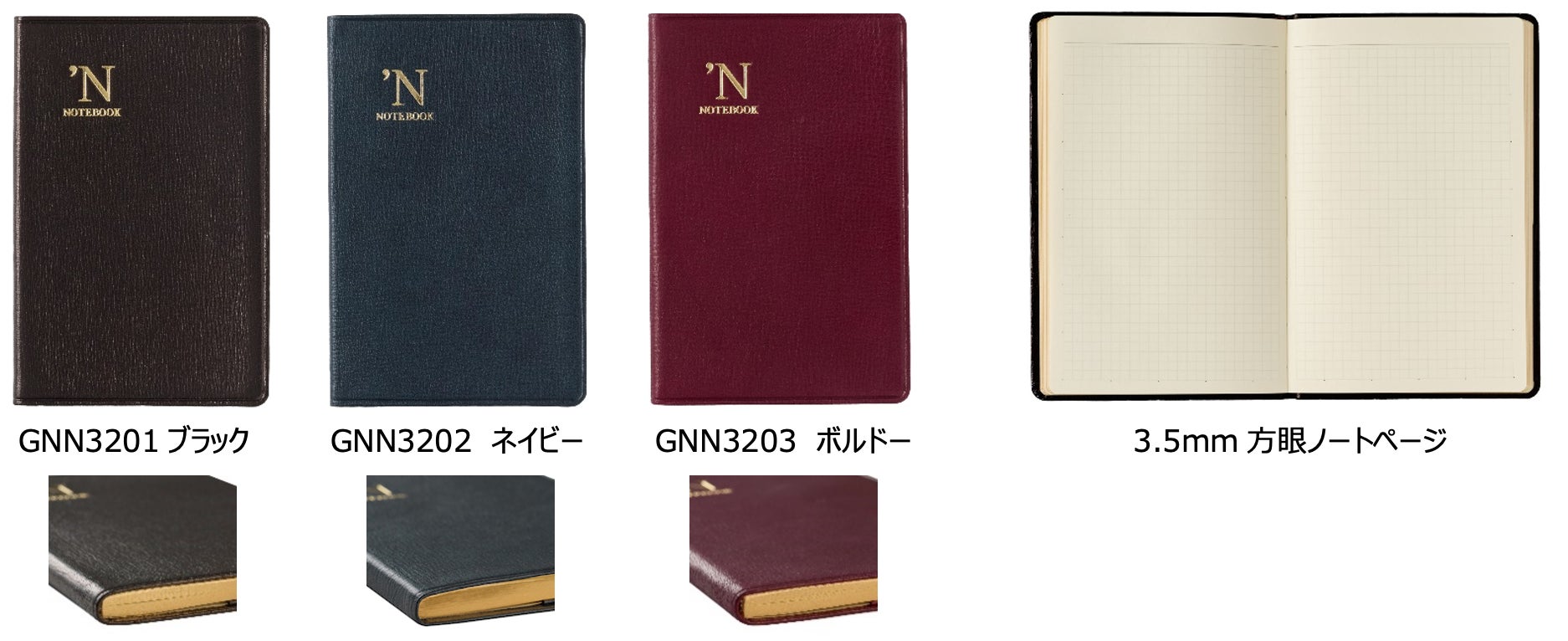表紙は能率手帳ゴールドと同じ革(ヤンピー)を使用し、小口(手帳の断面)には本金加工を施したポケットノート。中面は全て3.5mmの方眼ノートページで、ゴールド用紙の書き味をメモ帳として愉しめます。読書ノートや料理のレシピ、アイデア帳など、テーマごとに分けて使うのもおすすめです。